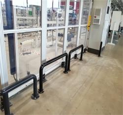 辦公區(qū)中庭玻璃處防撞柱現(xiàn)場(chǎng)安裝施工項(xiàng)目
